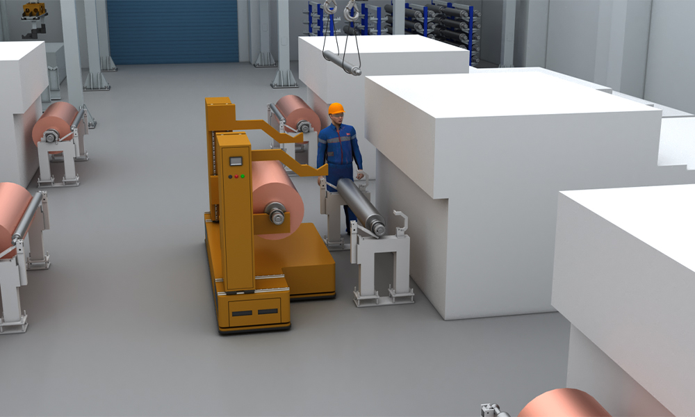 •             銅箔卷料負載大、周轉(zhuǎn)工序多,搬運頻次高,對接機臺空間與高度各異,工作環(huán)境復(fù)雜