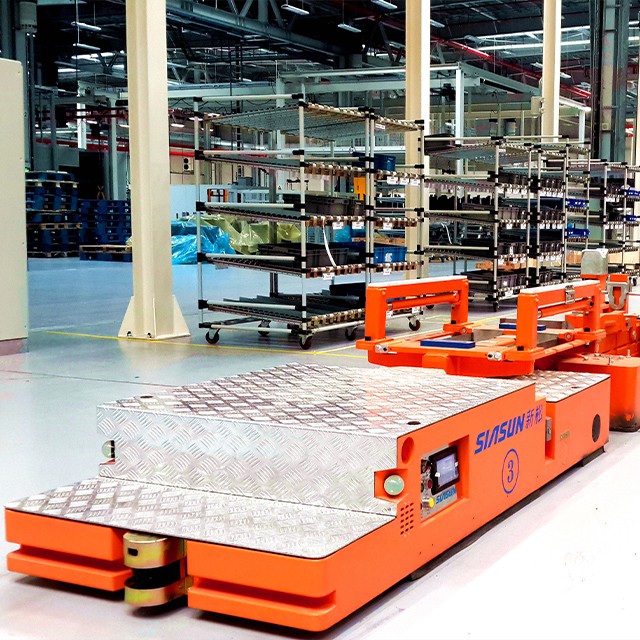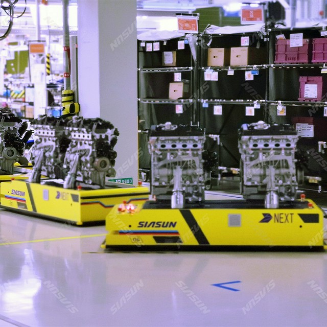 隨著智能制造概念的引入,對汽車生產(chǎn)物流的自動化、柔性化提出了更高的要求。 AGV系統(tǒng)不僅可以完成零件的自動配送,還可以形成自動柔性裝配。新松根據(jù)客戶的需求,提供了多種輔助裝配型移動機(jī)器人產(chǎn)品,目前在總裝車間的前端模塊分裝工藝、發(fā)動機(jī)生產(chǎn)分裝工藝、變速箱分裝工藝、內(nèi)飾線分裝工藝、前橋分裝工藝、后橋分裝工藝;在電池車間的模組生產(chǎn)工藝,pack生產(chǎn)工藝等均有廣泛的應(yīng)用。