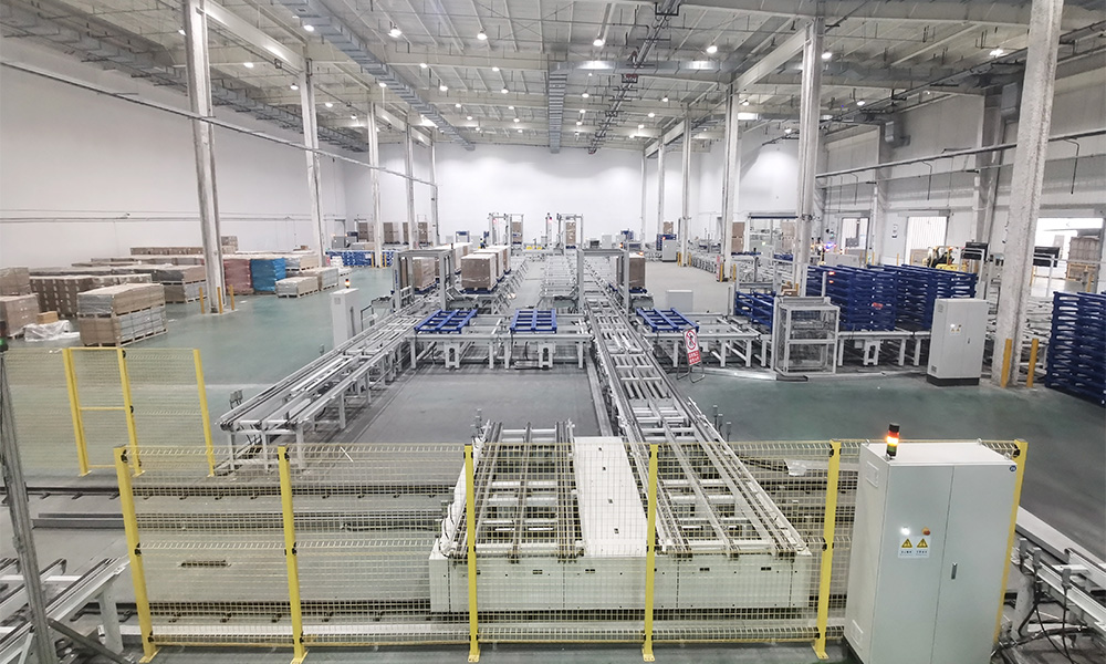 全球領(lǐng)先的高性能光伏產(chǎn)品制造商的10GW電池+10GW組件智能工廠項(xiàng)目,該制造商原料庫(kù)與組件庫(kù)占地面積高達(dá)8.7萬(wàn)平方米,原料和組件成品均具有超大尺寸、超大重量的特點(diǎn),現(xiàn)場(chǎng)各類非標(biāo)重載堆垛機(jī)60余臺(tái),貨位總數(shù)近9萬(wàn)個(gè),重載穿梭車(chē)百余臺(tái),僅組件車(chē)間環(huán)穿軌道長(zhǎng)度就接近1公里,從項(xiàng)目規(guī)模到效率要求均遠(yuǎn)超行業(yè)常規(guī)本項(xiàng)目為原料、輔料、包材及成品的存儲(chǔ),并利用自動(dòng)物流輸送系統(tǒng)完成自動(dòng)化立體倉(cāng)庫(kù)和組件車(chē)間直接的物料輸送。工廠建成投產(chǎn)后,可年產(chǎn)N型高效光伏電池10GW、高效光伏組件10GW,供應(yīng)全球市場(chǎng)需求。