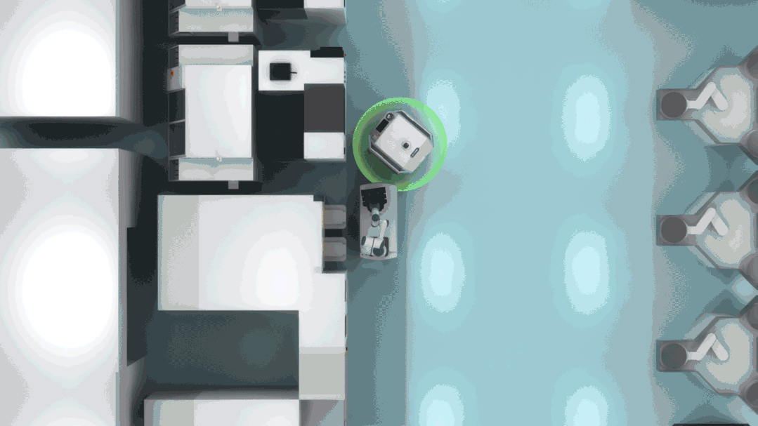 圖:調度系統協調清潔機器人0轉彎半徑,合理避讓產線移動機器人