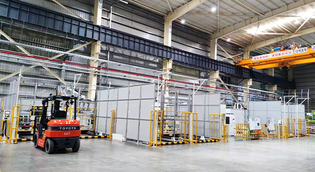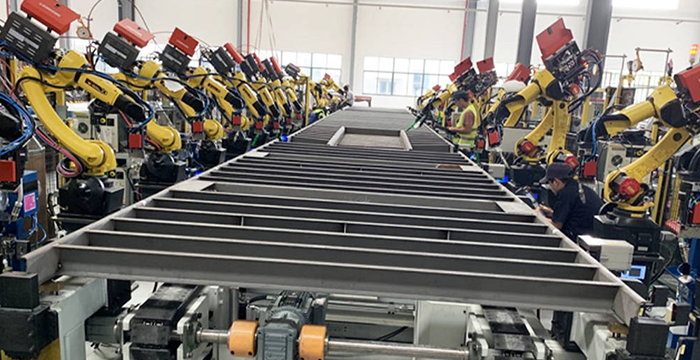 集裝箱焊接業務包括20尺、40尺標準箱型和45尺等非標箱型柔性生產。實現集裝箱底架、側板、前端、門端、總裝高效自動焊接。新松公司能夠提供從工藝、物流、焊接、打砂、噴漆、完工、信息化、數字孿生等集裝箱智能工廠整體解決方案。