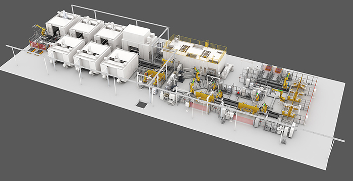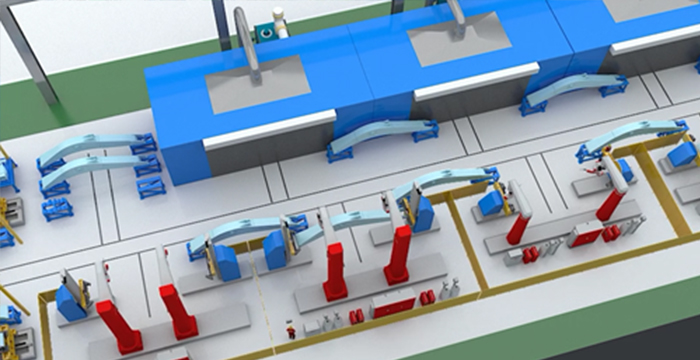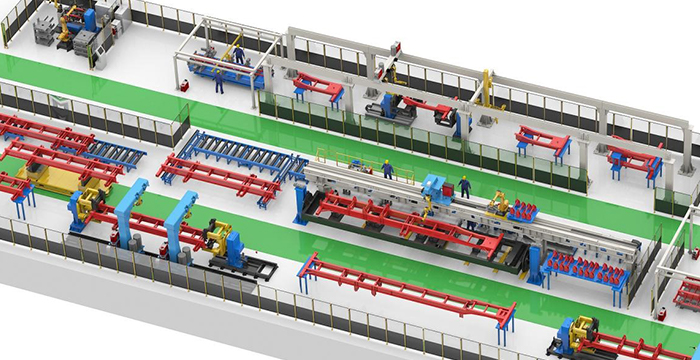 特種車業務涵蓋自卸車、骨架車、倉欄車、側翻車、廂式車、冷藏車、攪拌車的車架、廂板的焊接。新松公司根據特種車行業多品種、小批量、結構相似的特點,制定了柔性、高效、智能的解決的方案。采用信息化技術實現生產數據的管理,采用AGV實現多品種產品的地面安全周轉,采用離線編程和參數化編程及激光跟蹤技術實現產品的高效焊接。