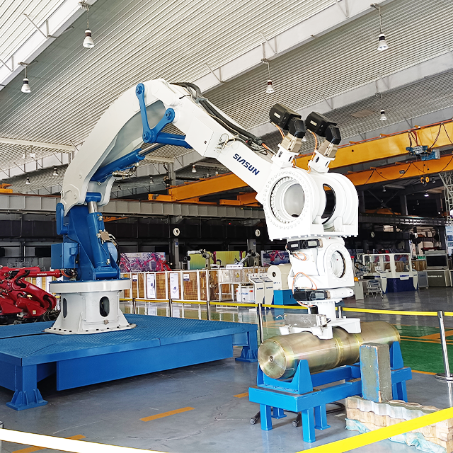重載垂直多關(guān)節(jié)機器人依托新松公司擁有自主知識產(chǎn)權(quán)的野外車載重載機器人技術(shù)來實現(xiàn),采用垂直多關(guān)節(jié)形式機器人結(jié)構(gòu),實現(xiàn)重載機器人高精度多軸復(fù)合運動,可滿足大慣量負載搬運、裝配等需求。