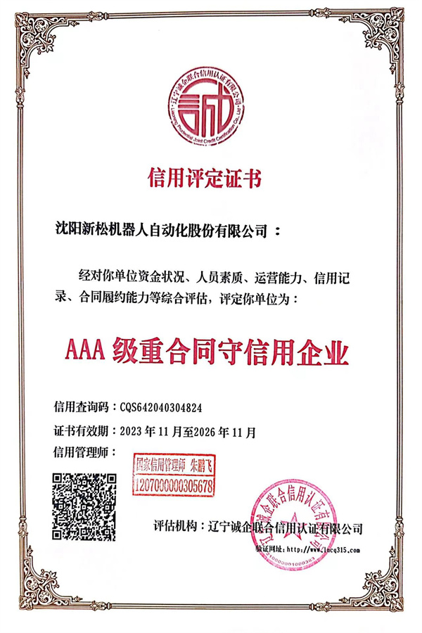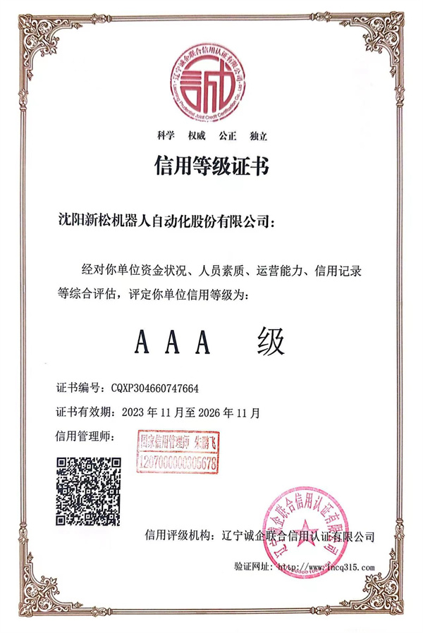 您當前所在位置:首頁 > 關于新松 > 企業認證